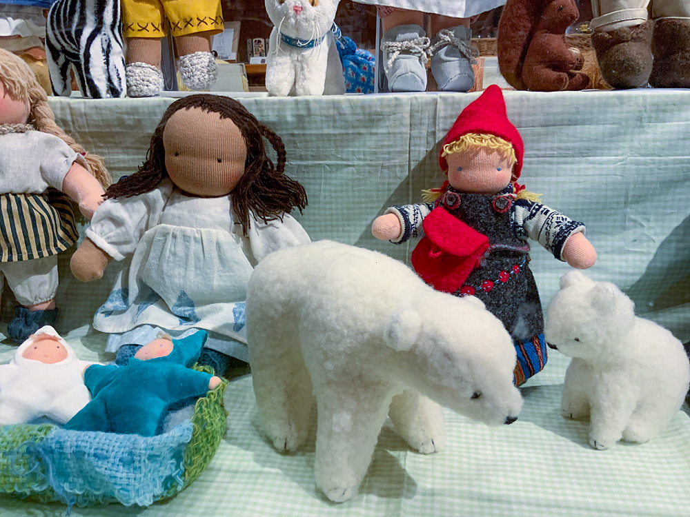 左から:ウォルドルフ人形B体と星の子、ウォルドルフ人形A体と白くま(参考品)