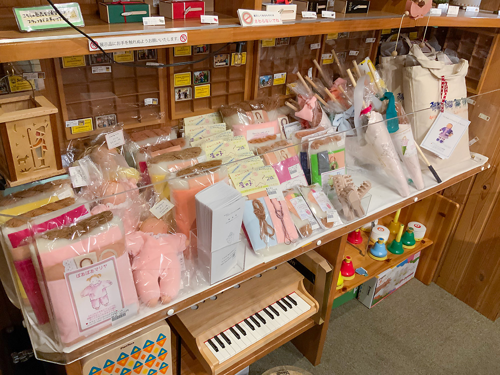 スウェーデンひつじの詩舎講師の方々が作ったウォルドルフ人形®と、ウールドッカが並びます。 展示期間中、スウェーデンひつじの詩舎制作の人形や動物など様々なキットを普段より充実して販売しています! 期間中には、販売可能な完成品も店頭に並び、9月28日(日)には、「コーンカップ人形」を作る講習会も開催します。