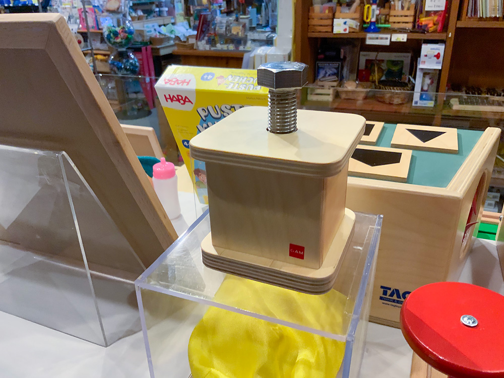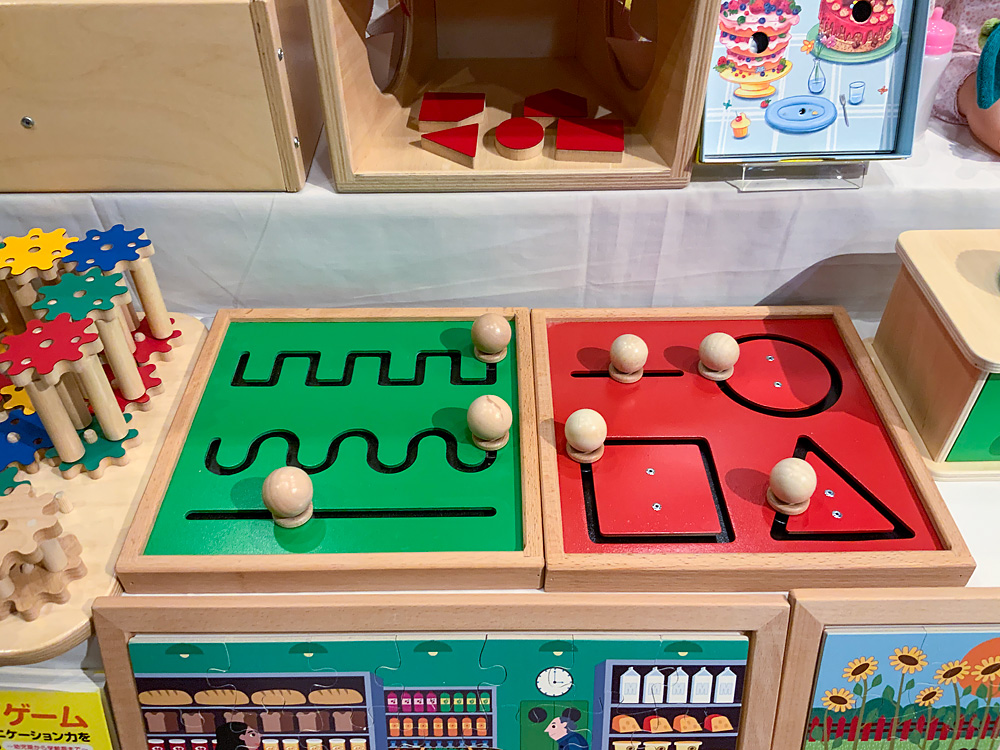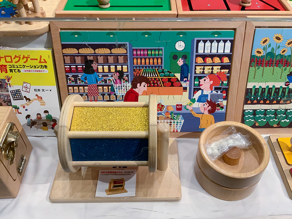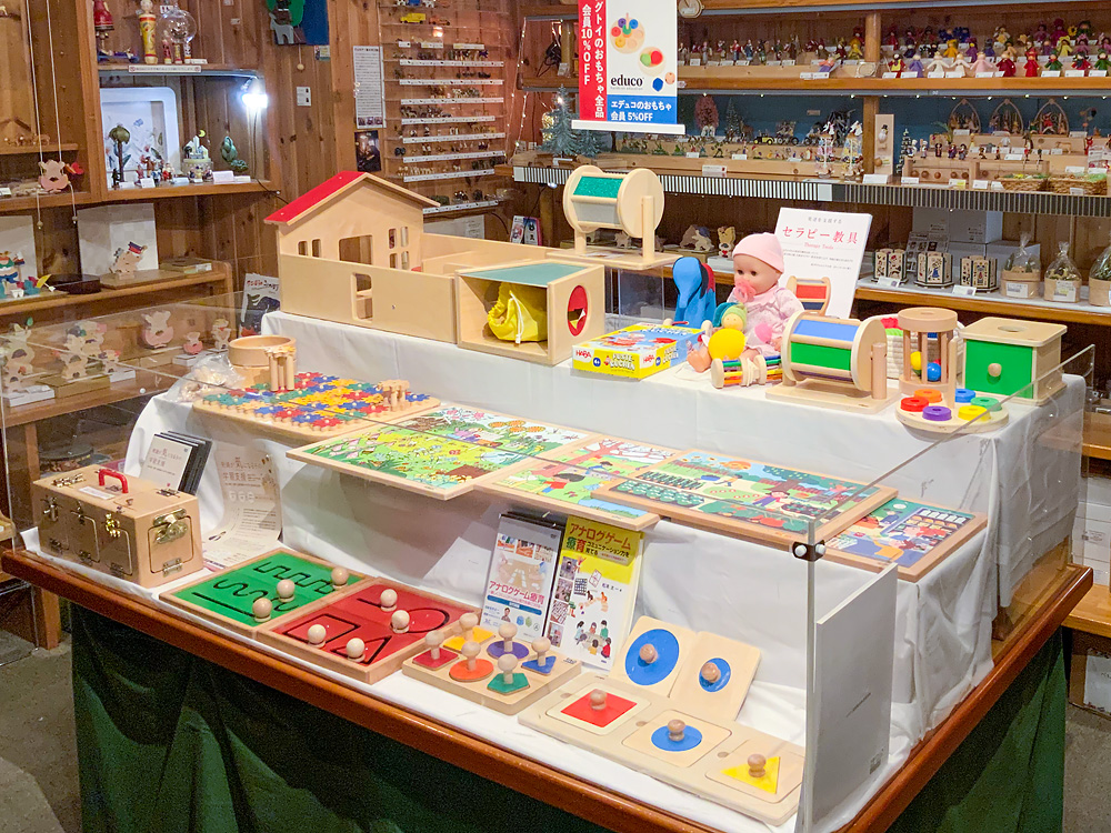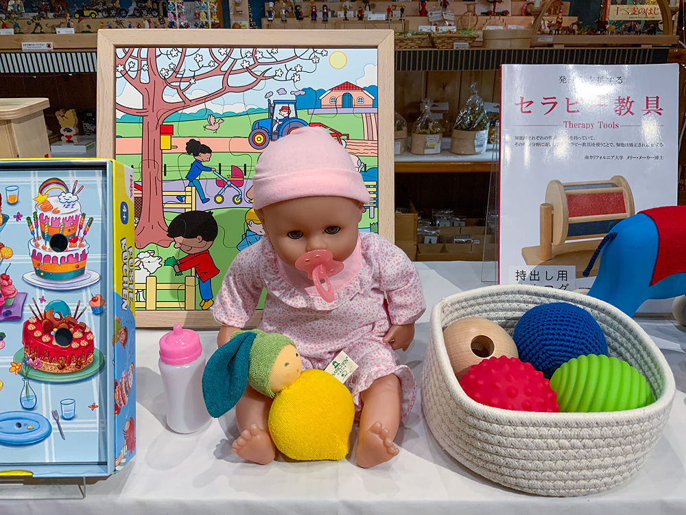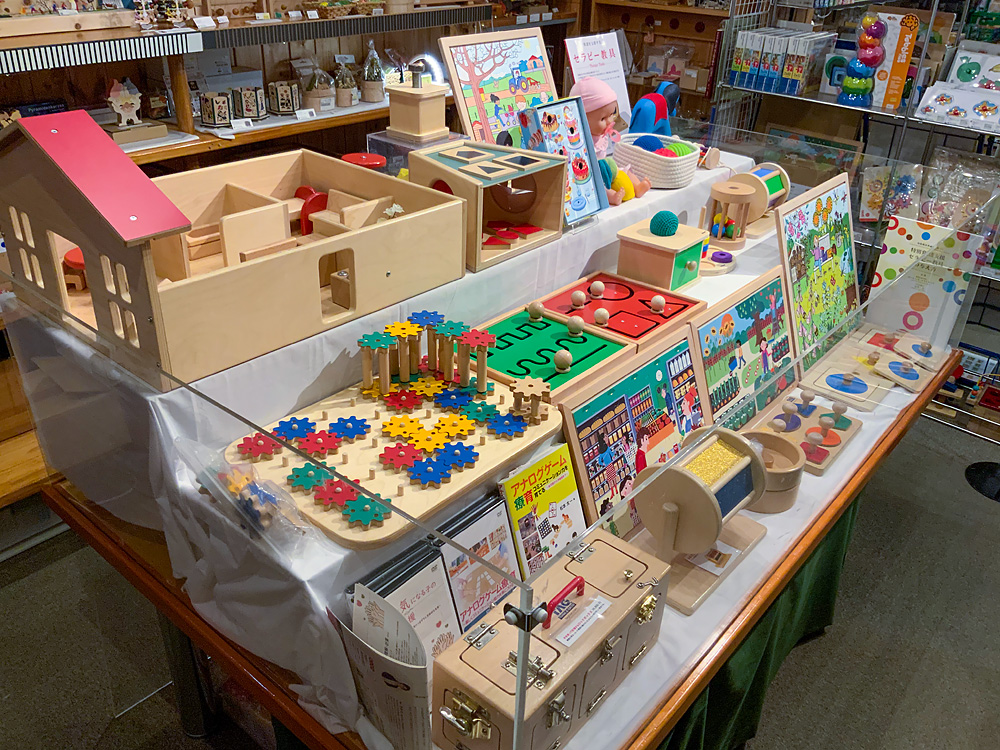こちらは例年開催しているもので、アメリカで発達を支援するおもちゃを作っているメーカー「タグトイ社」のおもちゃを展示します。普段店頭には置いていないものなので、この機会にぜひご覧ください。