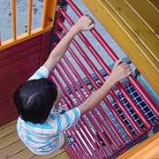 垂直ラダーを登ってしか、屋根裏部屋には入れません。屋根裏部屋は元気な子ども達へのごほうびなのです。でも、ふざけてはいけません。思わぬ事故というのは、はしゃぎすぎての不注意が原因であることが多いのです。