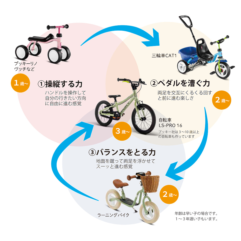 | 3 | バランス | 2歳くらいから | ラーニングバイク |