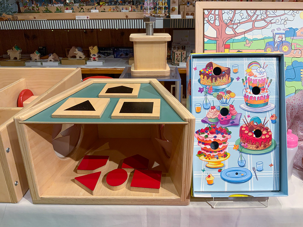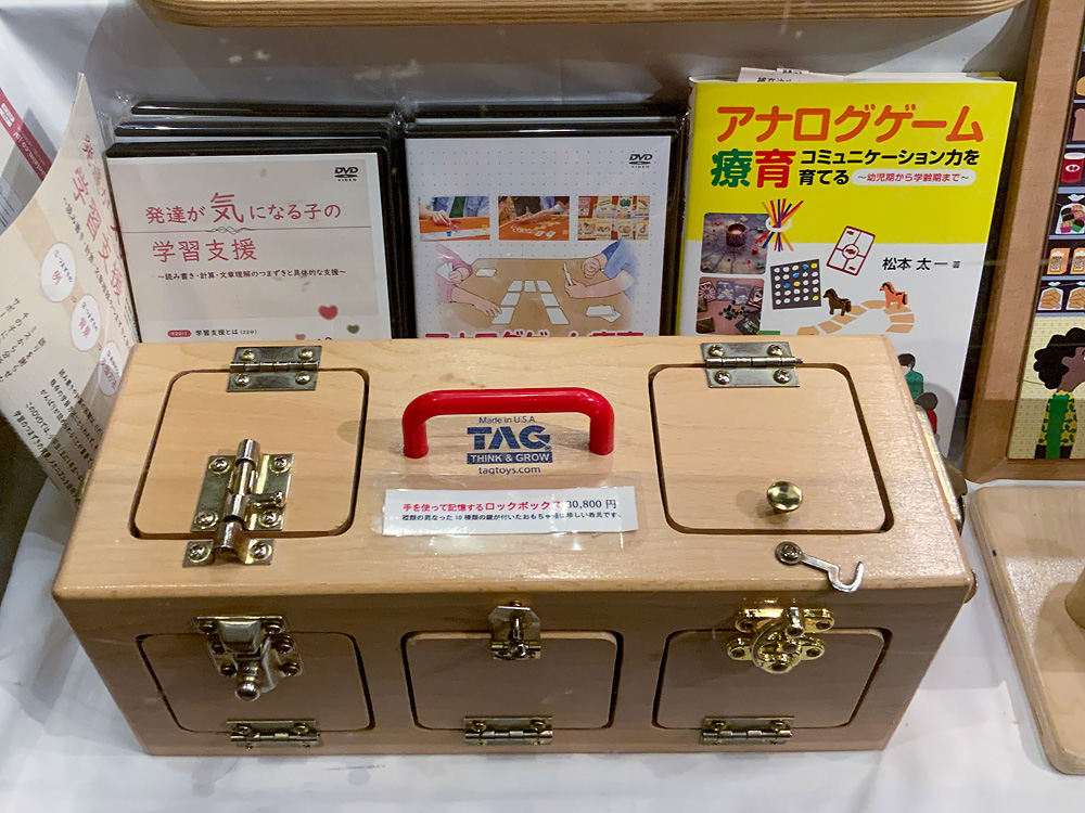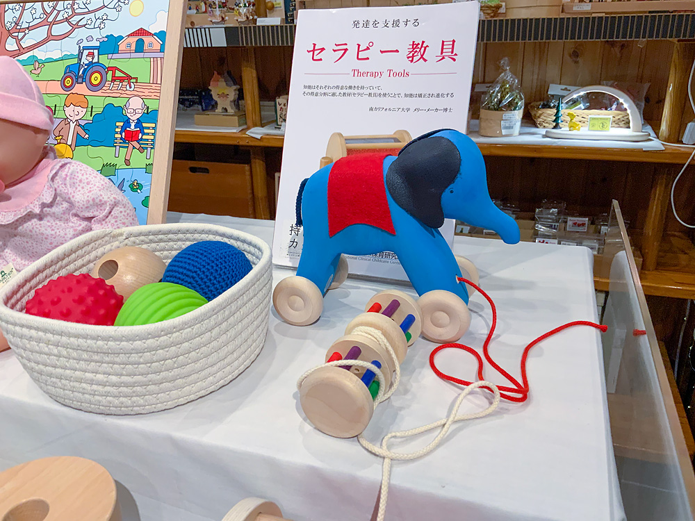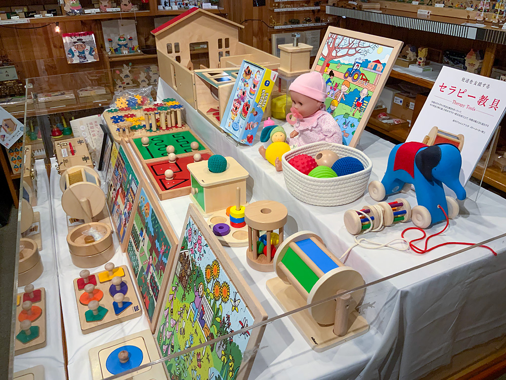 こちらは例年開催しているもので、アメリカで発達を支援するおもちゃを作っているメーカー「タグトイ社」のおもちゃを展示します。普段店頭には置いていないものなので、この機会にぜひご覧ください。