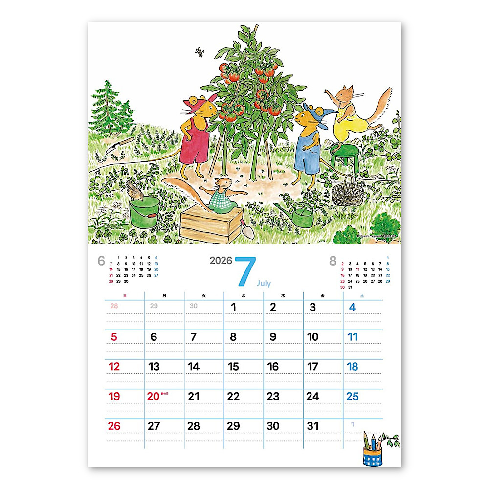 いつも元気な「ぐりとぐら」と一緒に、1年を過ごしてみませんか? 絵本の名場面が次々に登場し、すがすがしく楽しい気分を味わえるカレンダーです。日付の欄は余白をたっぷりとっているので、予定がたくさん書き込めるようになっています。「ぐりとぐら」特製シールのおまけつき! シンプルで使いやすい、毎年人気のカレンダーです。お早めにお求めください。
