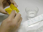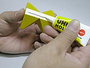 5.5分程度の仮接着の後、はみ出たボンドをぬれティッシュで、きれいに拭き取ります。