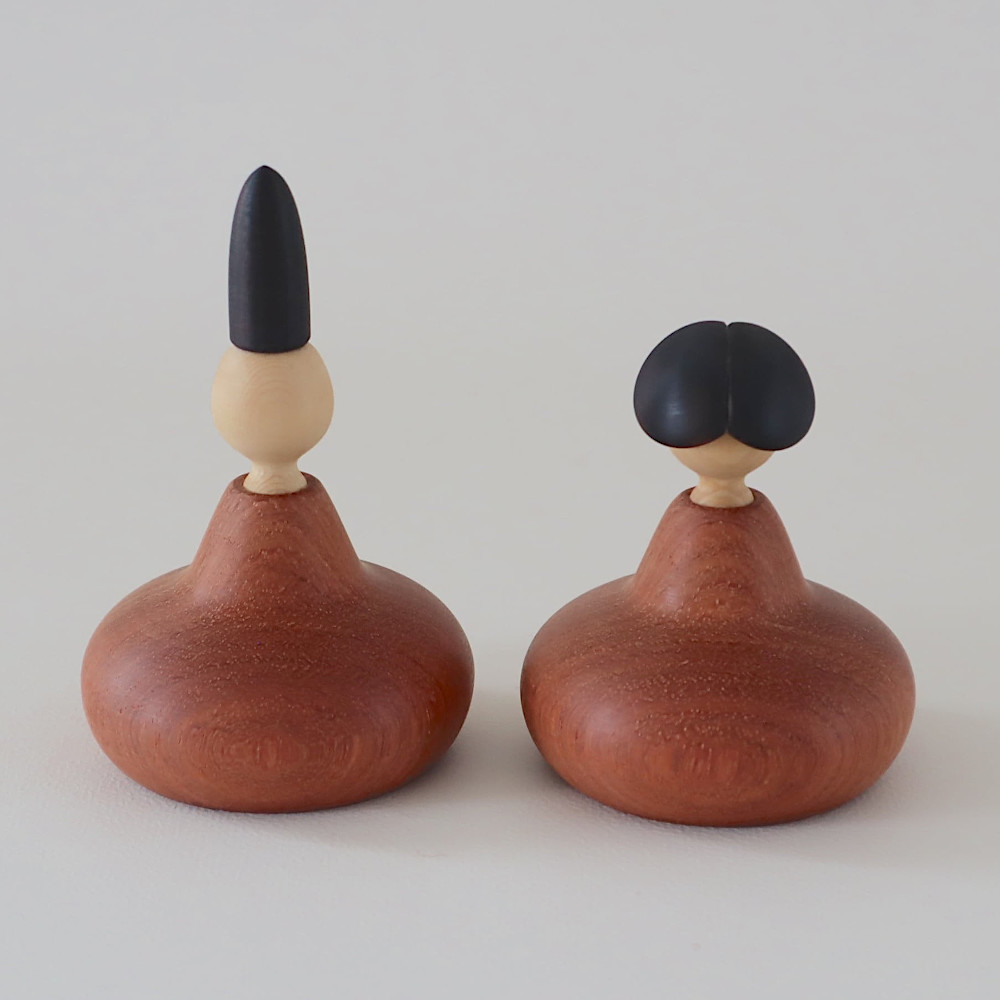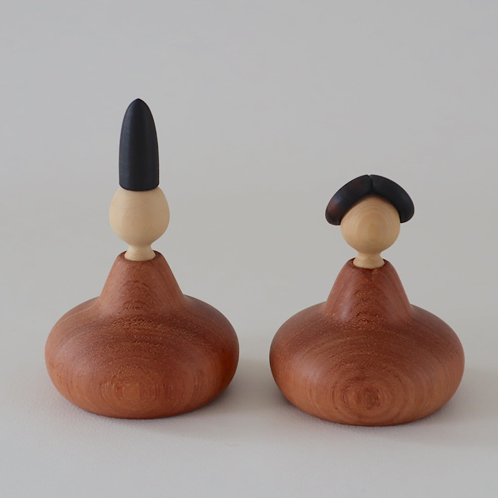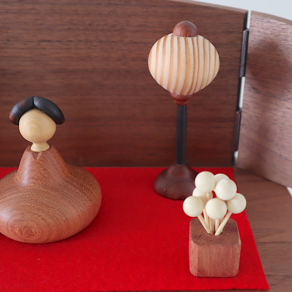 旭川にて旋盤職人として木のおもちゃや節句の飾りを製作し活躍した三浦木地代表 三浦忠司作のおひなさまです。 2025年4月に惜しまれつつ引退されましたが、最後に限定品として、高級材カリンを使用したおひなさまを製作しました。