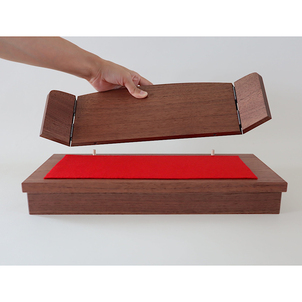 ウォルナット材の台座と屏風はgood homemade代表 大原卓也が製作しています。 good homemade創業以来台座を製作している関係から最後の作品を当工房にて扱わせていただく事となりました。
