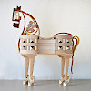 2026年の干支は午(うま)。白木の積み木を組み合わせた見事な作品です。首から胸、尻尾の曲線のライン、すらりとした脚が美しい。蹄の立ち上がり、頭部のフォルムなど見応えたっぷり。
