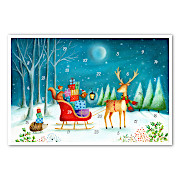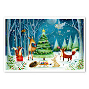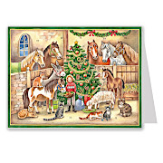 • SEL40157 アドベントカード ツリーを囲む馬と猫