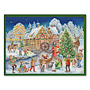 クリスマス前1ヶ月をアドベントといいます。12月1日から24日まで、24個の窓を毎日1つずつ開けていきます。開けるとあらわれる絵を楽しみながら、クリスマスが来るのを刻一刻、今か今かと待ちわびるカレンダーです。どんな絵が隠れているかは、開けてからのお楽しみ。