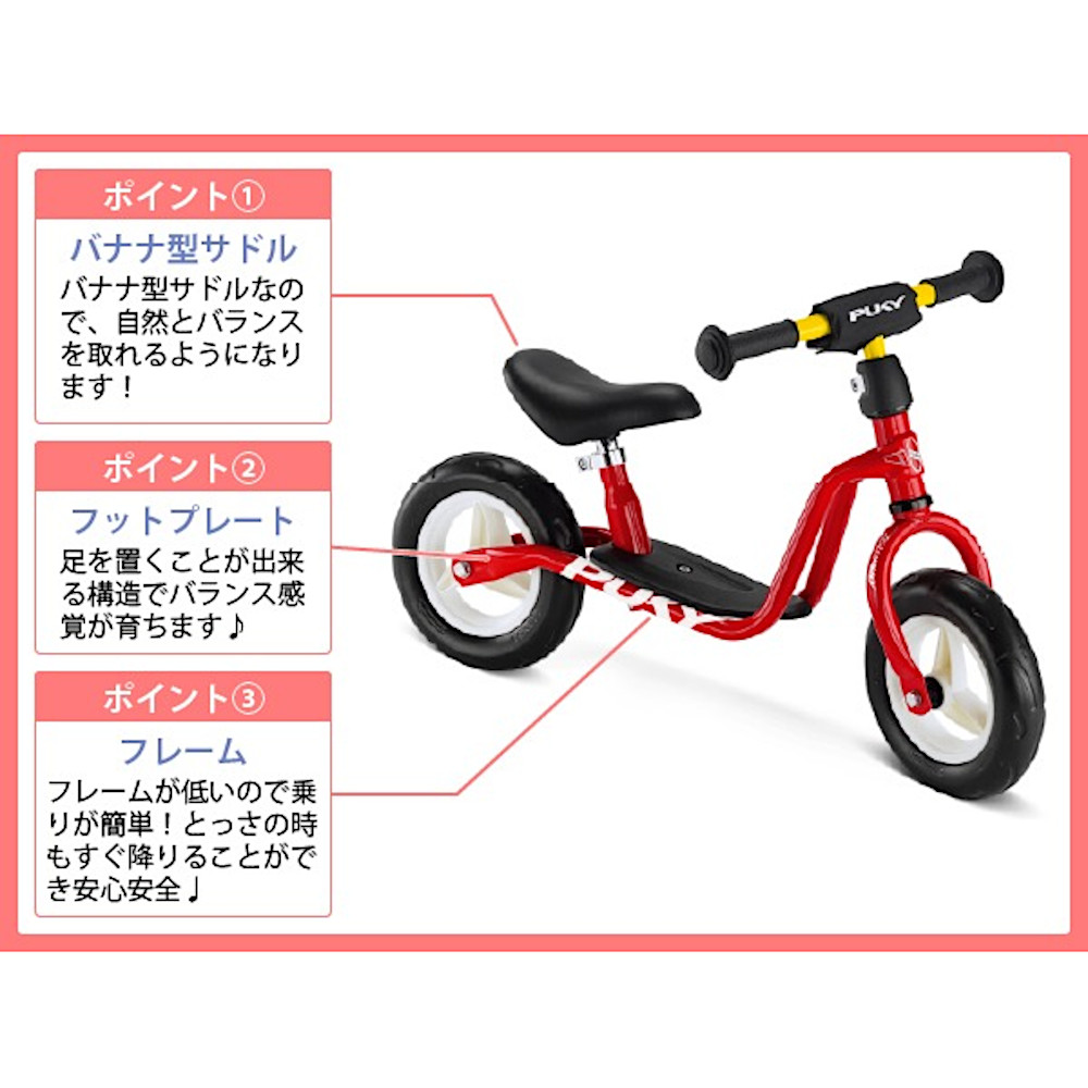 ストライダーなどのバランスバイクと比べ、足を置ける部分があり、乗り降りがしやすく、はじめてでも安心して楽しむことができます。これが自身にもつながります。足が乗せやすいため、自然と真ん中に足を乗せ、重心が高くなりすぎないため、安定した走行が可能です。