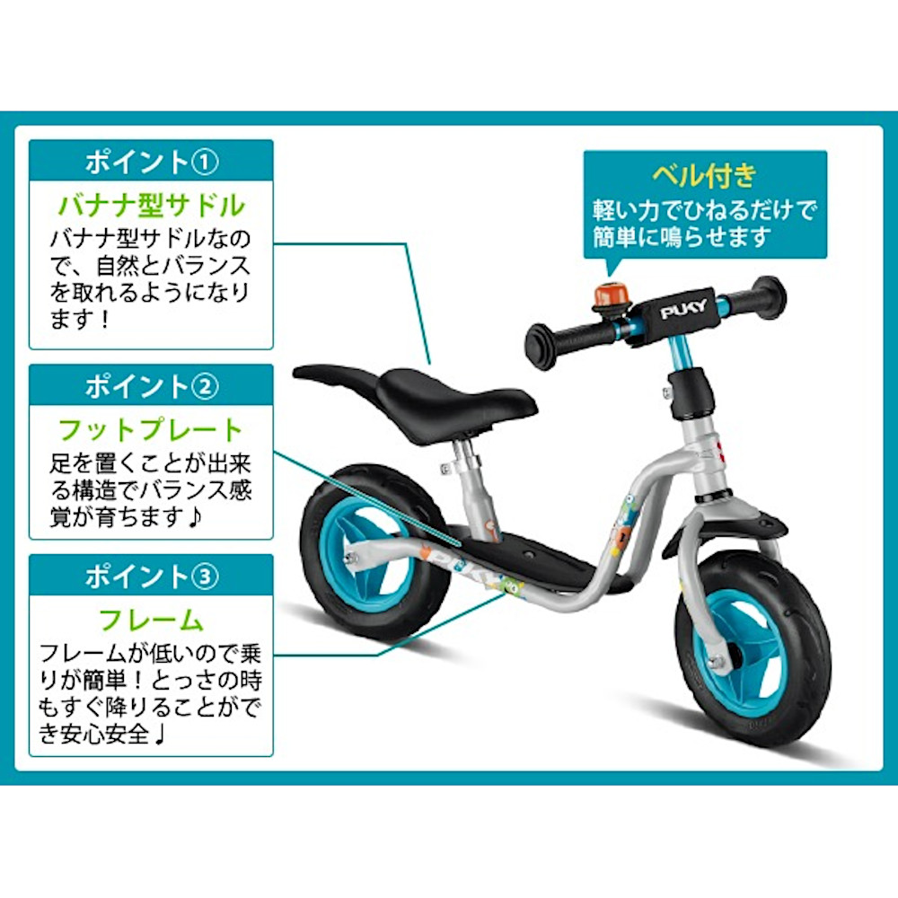 自転車の入門としておすすめなのが、ラーニングバイクです。機動性、バランス感覚、調整能力を鍛えます。タイヤもメンテナンスフリーで、とても静かに走ります。サドルはこのバイクのために開発されたもので、乗り心地も良く、乗り降りもスムーズです。
