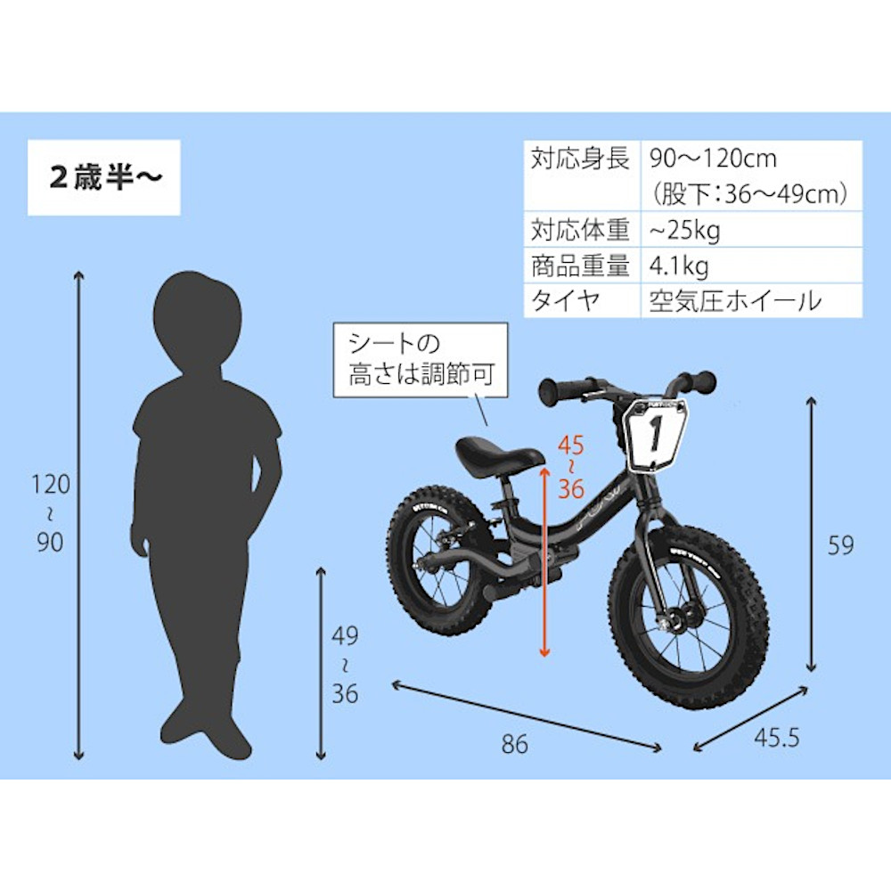 年齢: | 2歳半~(目安:身長90~120cm、股下36~49cm) |