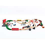 見開きでドーンと広がる木製レールのジオラマ。うっとりしますね。あらためて、ミッキィ社(スウェーデン)の素朴でシンプルな美しさに惚れ直しました。