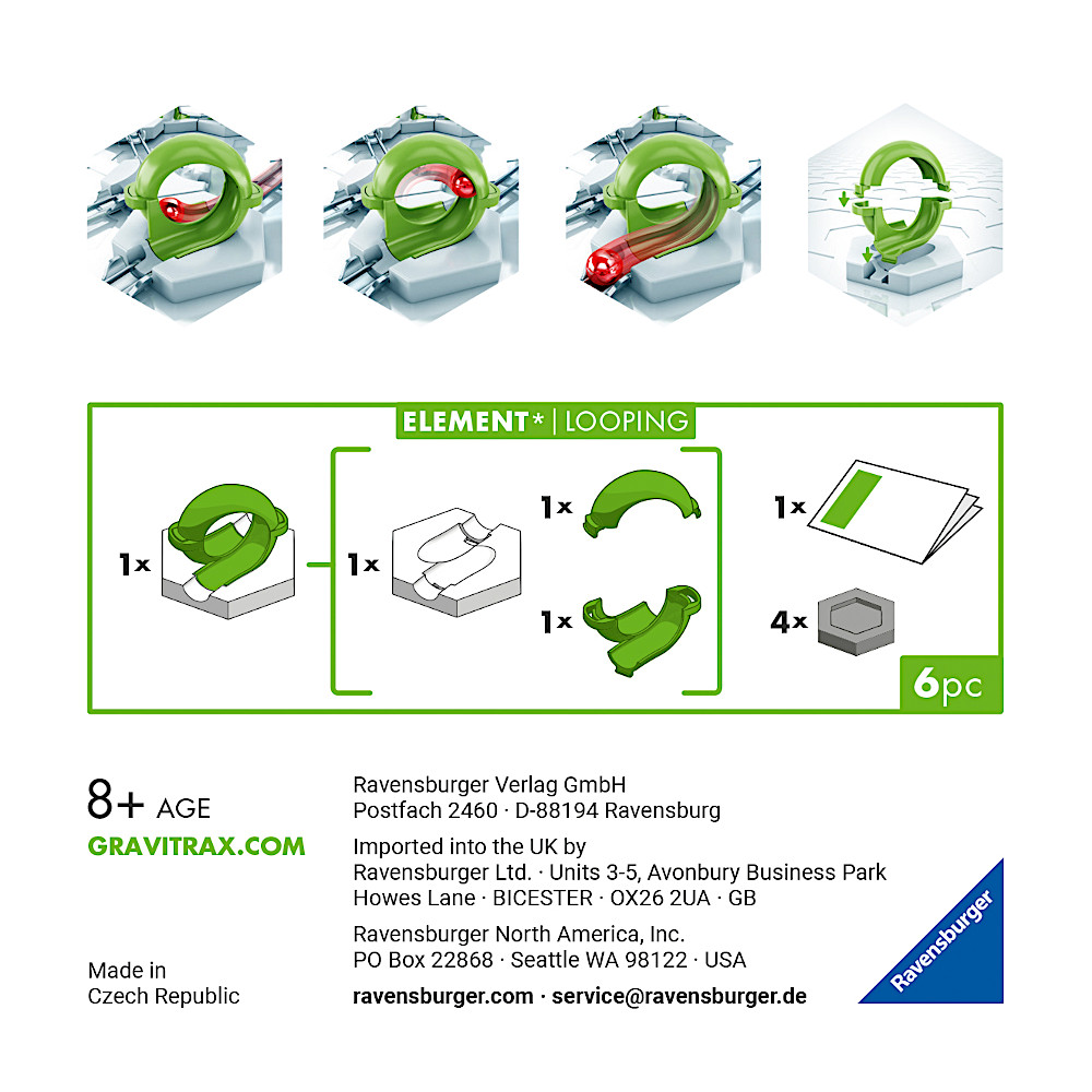 ボールをループに送り込め!ループを使えば世界を逆転させることができます。 このループをスターターセットに組み合わせればさらにアクションが増し興奮がいっぱいです! ボールが宙返りするにはどのくらいスピードが必要かな?