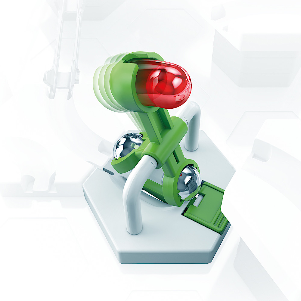 トラックを上のレベルに進めよう! 重力をものともしないカタパルトで信じられないような体験ができます! スクープを使って上段のトラックへボールを持ち上げ、走りの幅を広げよう!