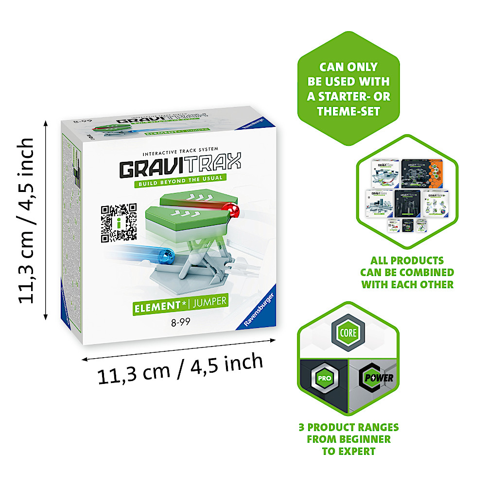 ジャンパーにボールが到達すると、ストッパーがはずれジャッキのように持ち上がり、ボールを瞬時に上段のコースへ移動させます。セット内容