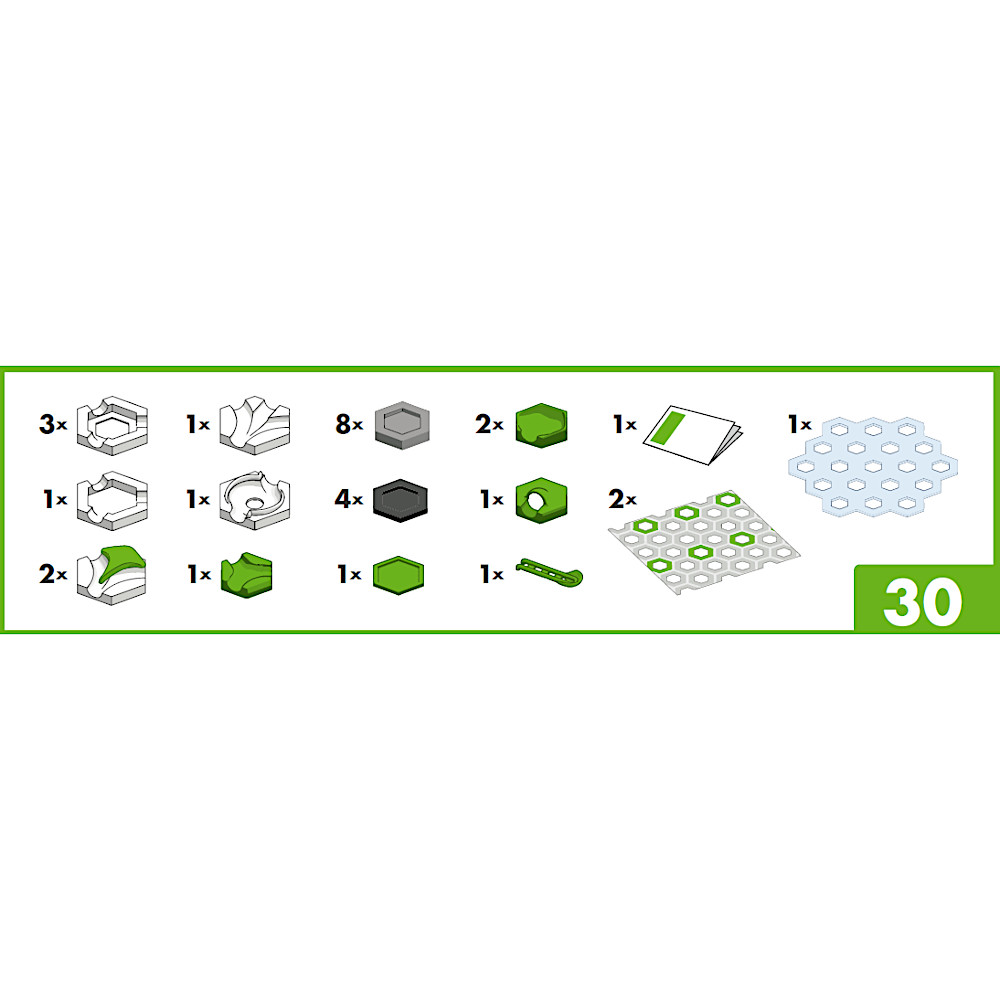 | ここから始めます。 | ボールを転がす大中小のトラックや、カーブタイルが入っているので、より長くボールを転がすことができます。 | GraviTraxを大きく広げることができ、様々なアクションタイルが入っています。 |