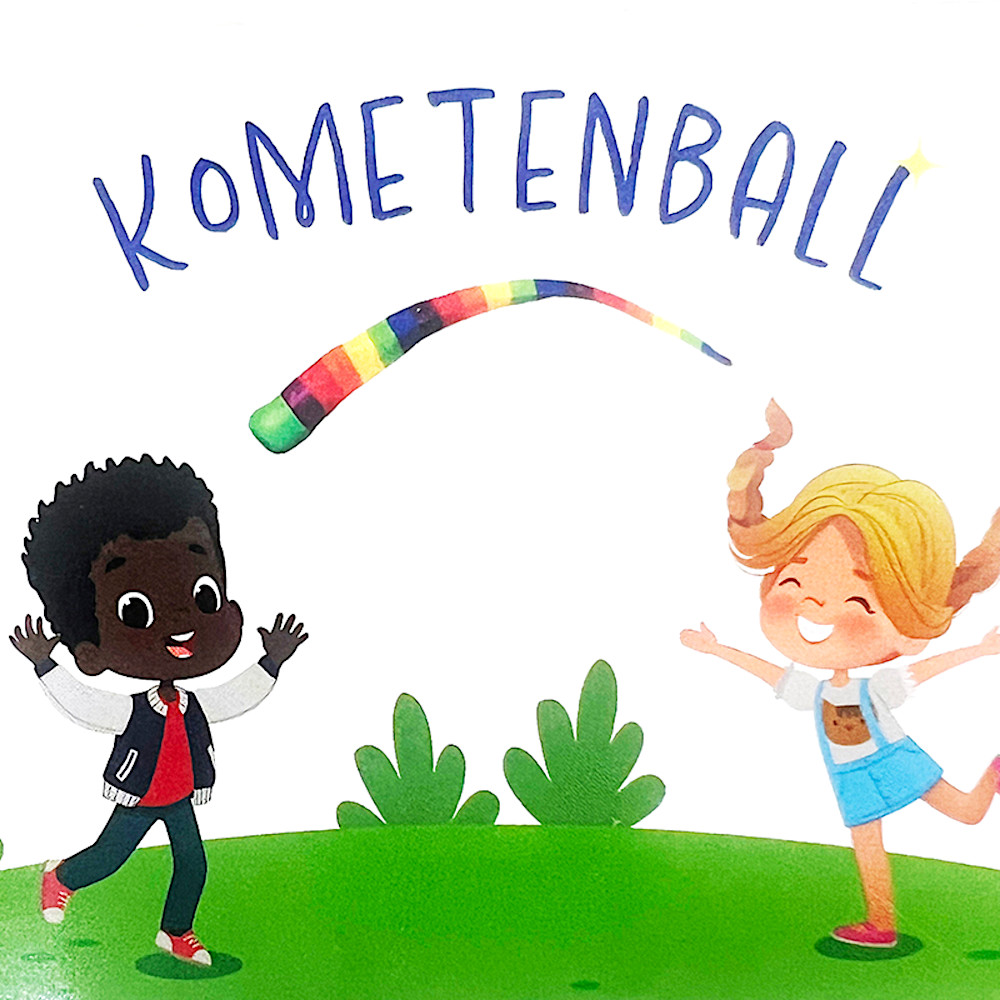 彗星の尾のように、長く伸びたしっぽで、掴みやすいボールです。やわらかい素材で当たっても痛くありません。軽いのによく飛びます。