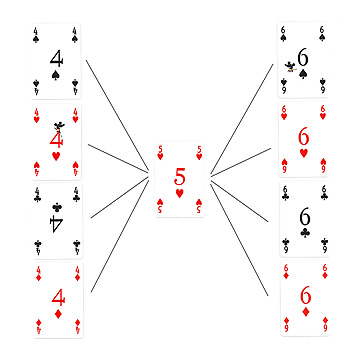 トランプの「スピード」は、1枚のカードに対して1つ小さい数字か、1つ大きい数字の合計8枚しか可能性はありません。そのため、途中で手詰まりになってロックしやすい欠点があります。