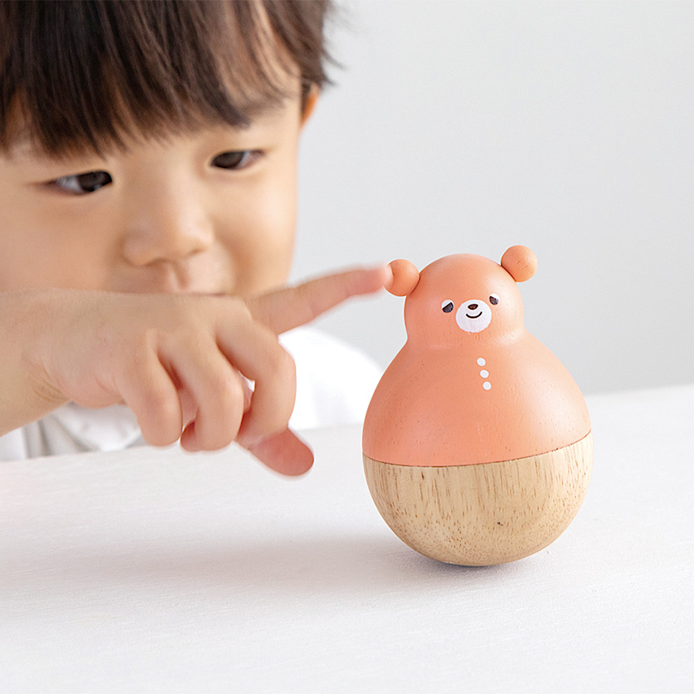 おとぼけ顔がかわいいくまのおきあがりこぼしです。揺れるたびに響く、リンリンコロンと鳴る鈴の音は、動かし方や力の加減によってリズムも変わり、親子で心地よい音色を楽しめます。