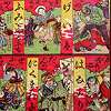 1つのマス目に1つのいろはかるたのことわざを描かれたすごろく。幕末から明治のおもちゃ絵の第一人者歌川芳藤(一鵬斉藤よし)が手がけた美麗な優品双六復刻版。通称のいろはカルタより画面が大きく、人々の表情やしぐさも生き生きと描かれているあでやかで見栄えのする逸品です。