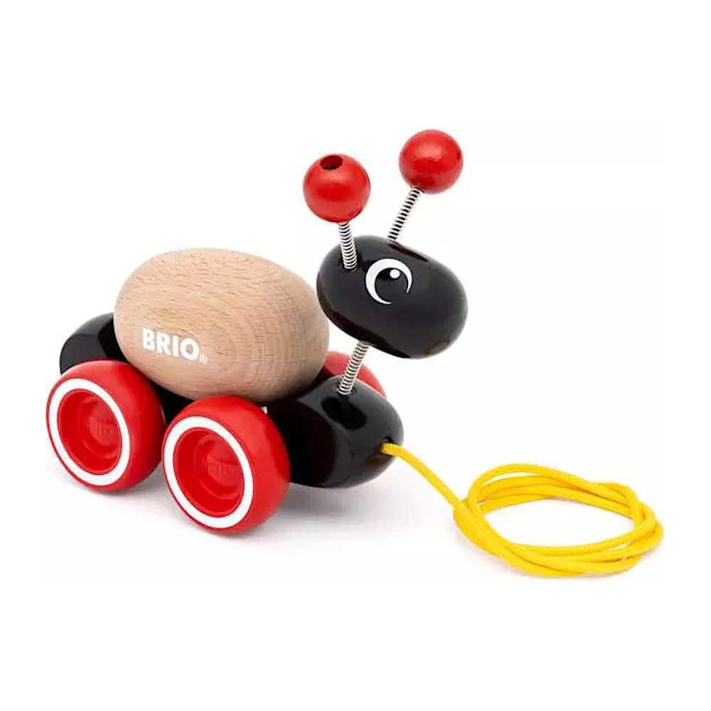 ブリオのロングセラープルトーイがリニューアル。ひっぱるとアリさんの上のたまごが転がります。