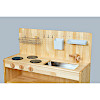 使いやすいようにカスタムすることで様々なおままごとの小物を置くことが可能になり、ネットが無い分すっきりとし、見た目もより美しいものとなっています。ブロック社製の棚や流し台は、シンプルでとても丈夫なので、園さんでとても活躍しています。