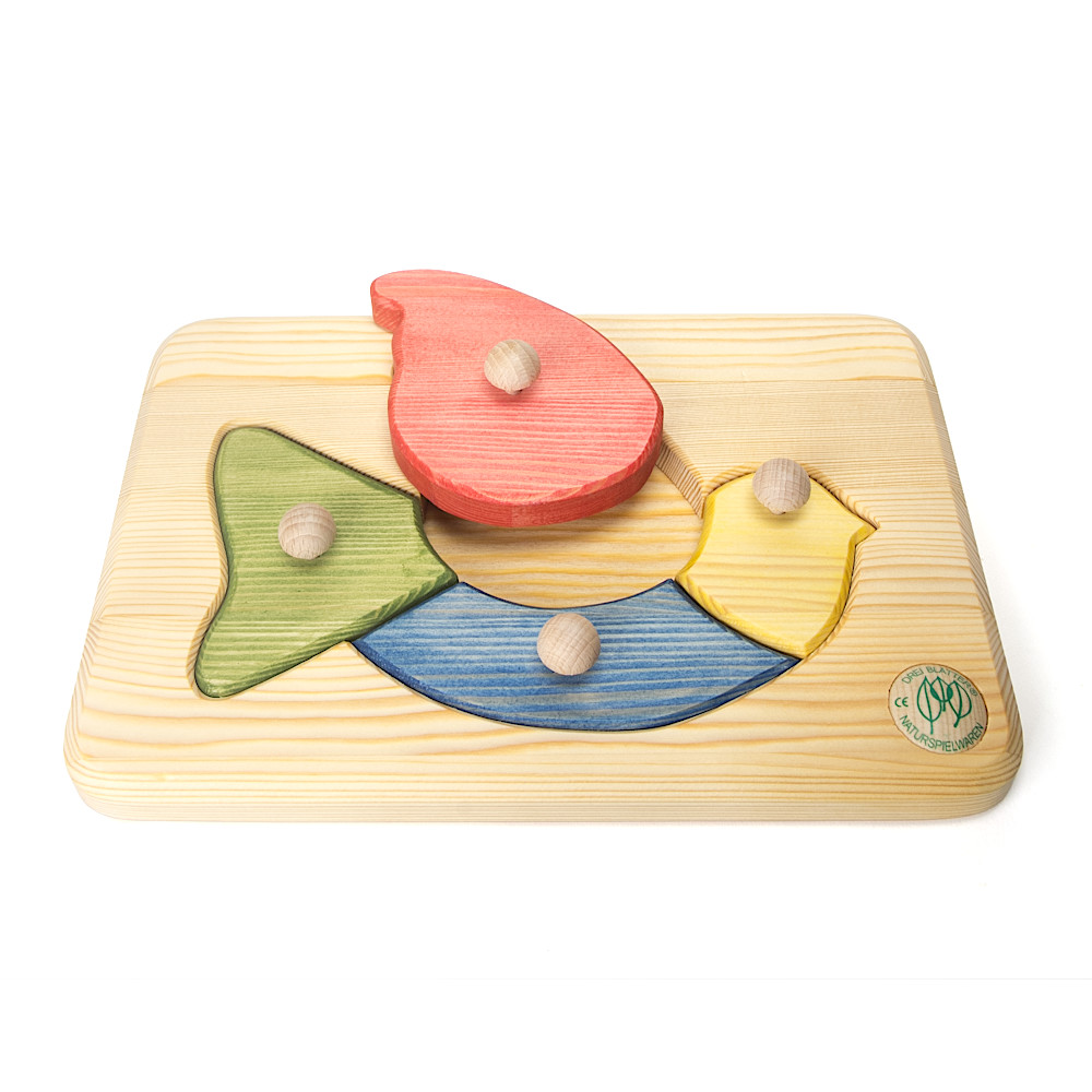 パズルの厚み約2.3cm、存在感のあるつまみ(φ約2cm)がついた亜麻仁油の香りが心地良い素朴なパズルです。1点ずつ、職人が手作業で仕上げています。棚に置けば部屋の装飾にもなります。