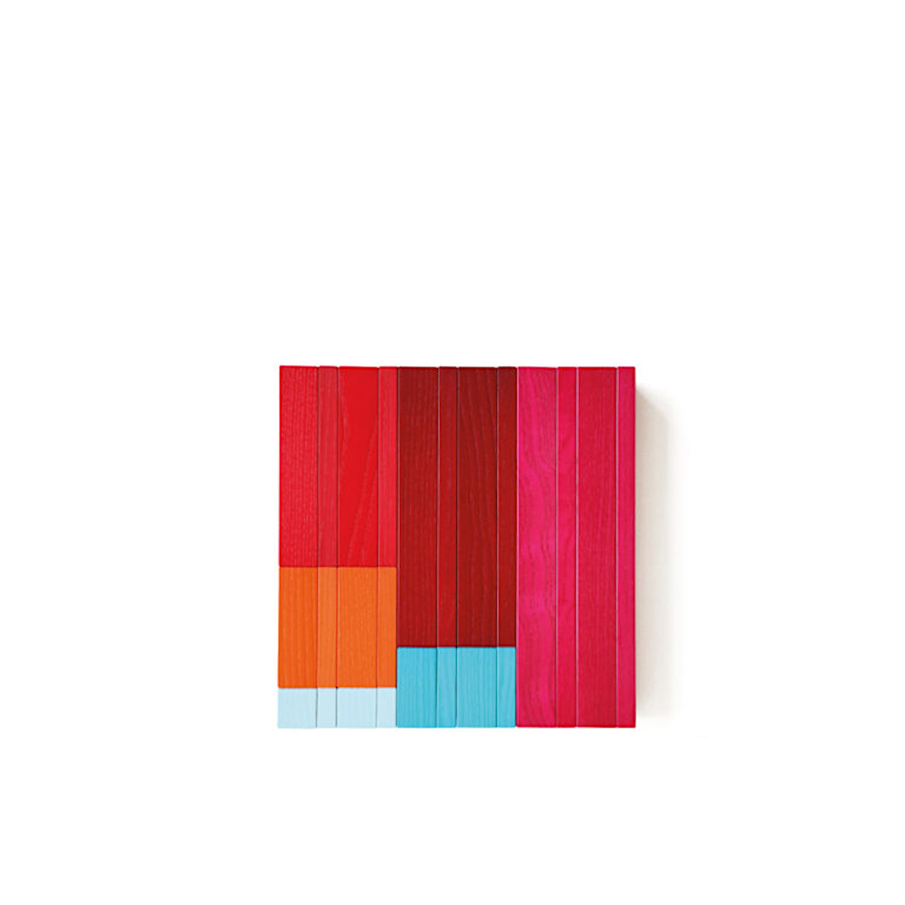 Tignoは、木材本来の個性を際立たせます。材料はホワイトアッシュ材を使用し、丁寧に研磨することで、自然な木目を美しく際立たせています。「Tigno」という名称はラテン語の「tignum」(建築用木材)に由来しており、まさにその名の通り、建築に無限の可能性をもたらす遊び心のある素材です。