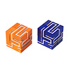 8個の立方体がゴムでつながっています。色の塗られていない道がつながるような大きい立方体を作ってください。