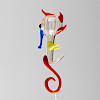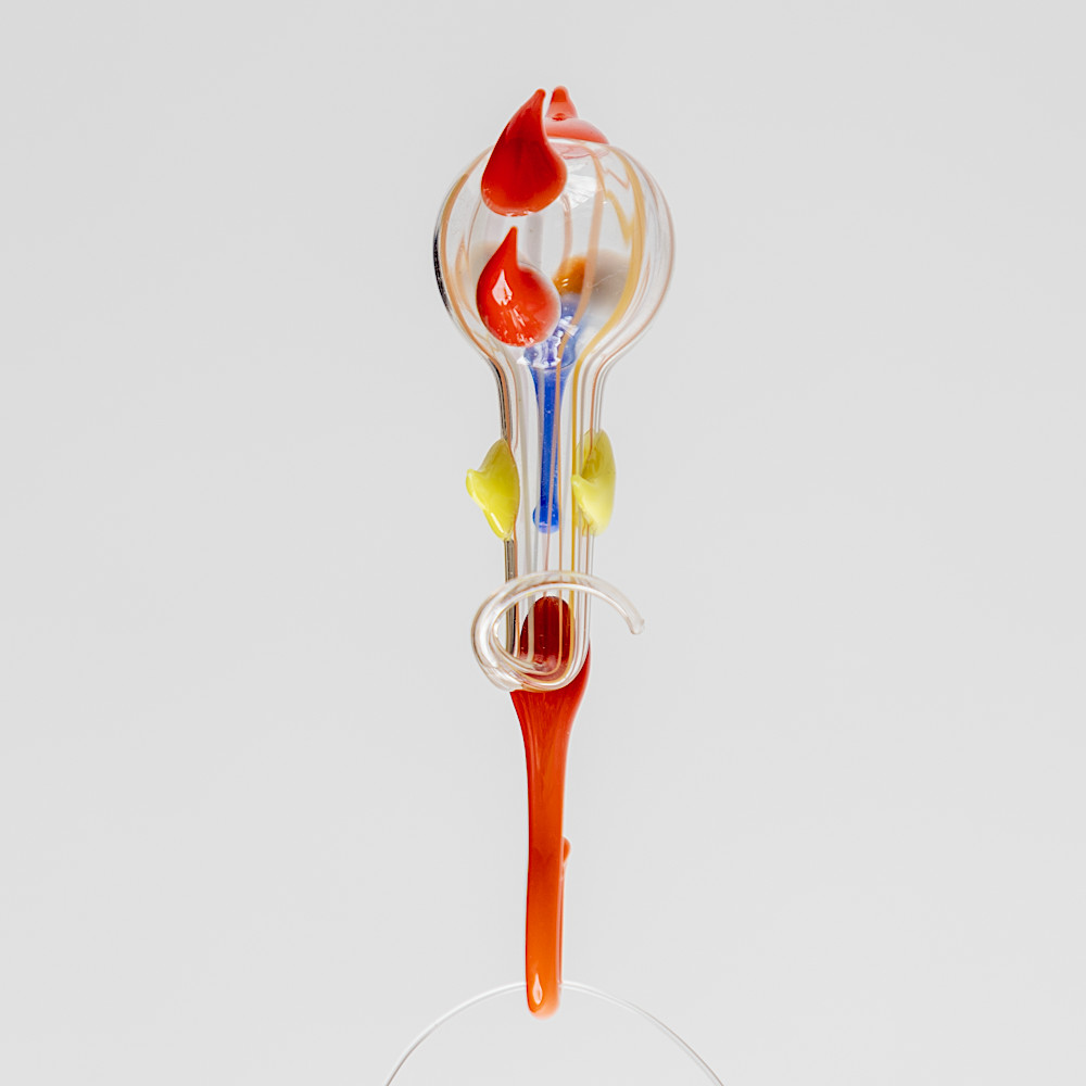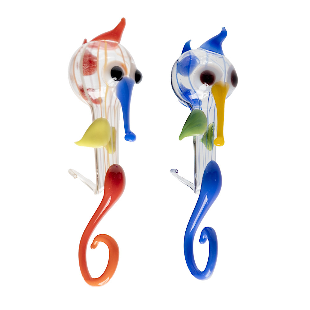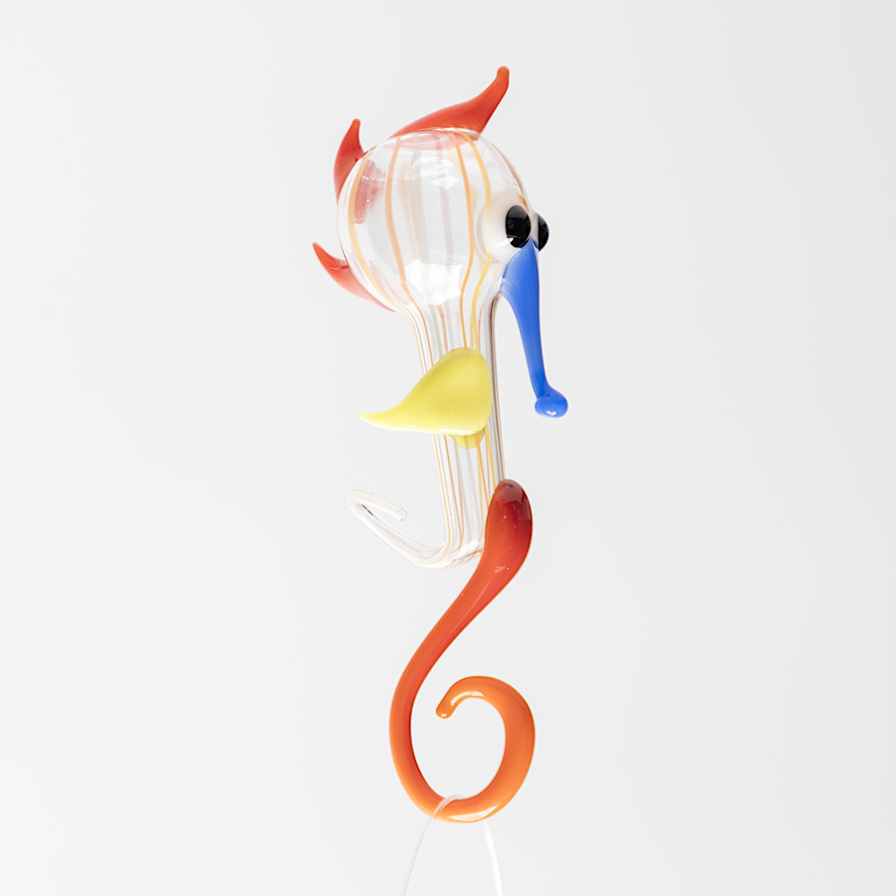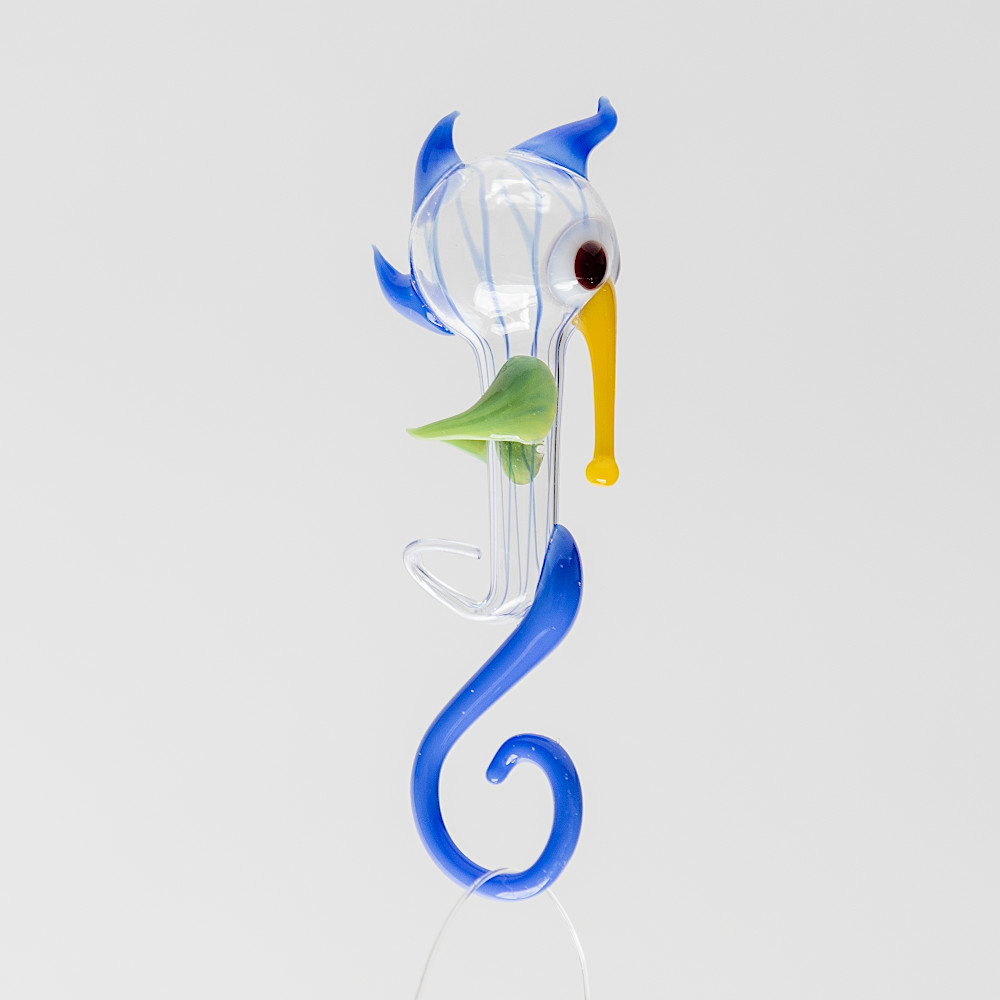 タツノオトシゴは口吹きガラス製で、体内は空洞、しっぽの先に小さな穴があいています。これは16世紀のフランスの著名な物理学者で哲学者であったデカルトの考えた原理に基づくおもちゃです。