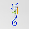 パスカルの原理を利用した科学おもちゃで、哲学者デカルトが考えたと言われ、「浮沈子(ふちんし)」と呼ばれます。 一般的な浮沈子は上下に浮き沈みするのですが、このタツノオトシゴは、ガラス製のしっぽの部分の向きを工夫することで、くるくると回転するような動きを見せてくれます。